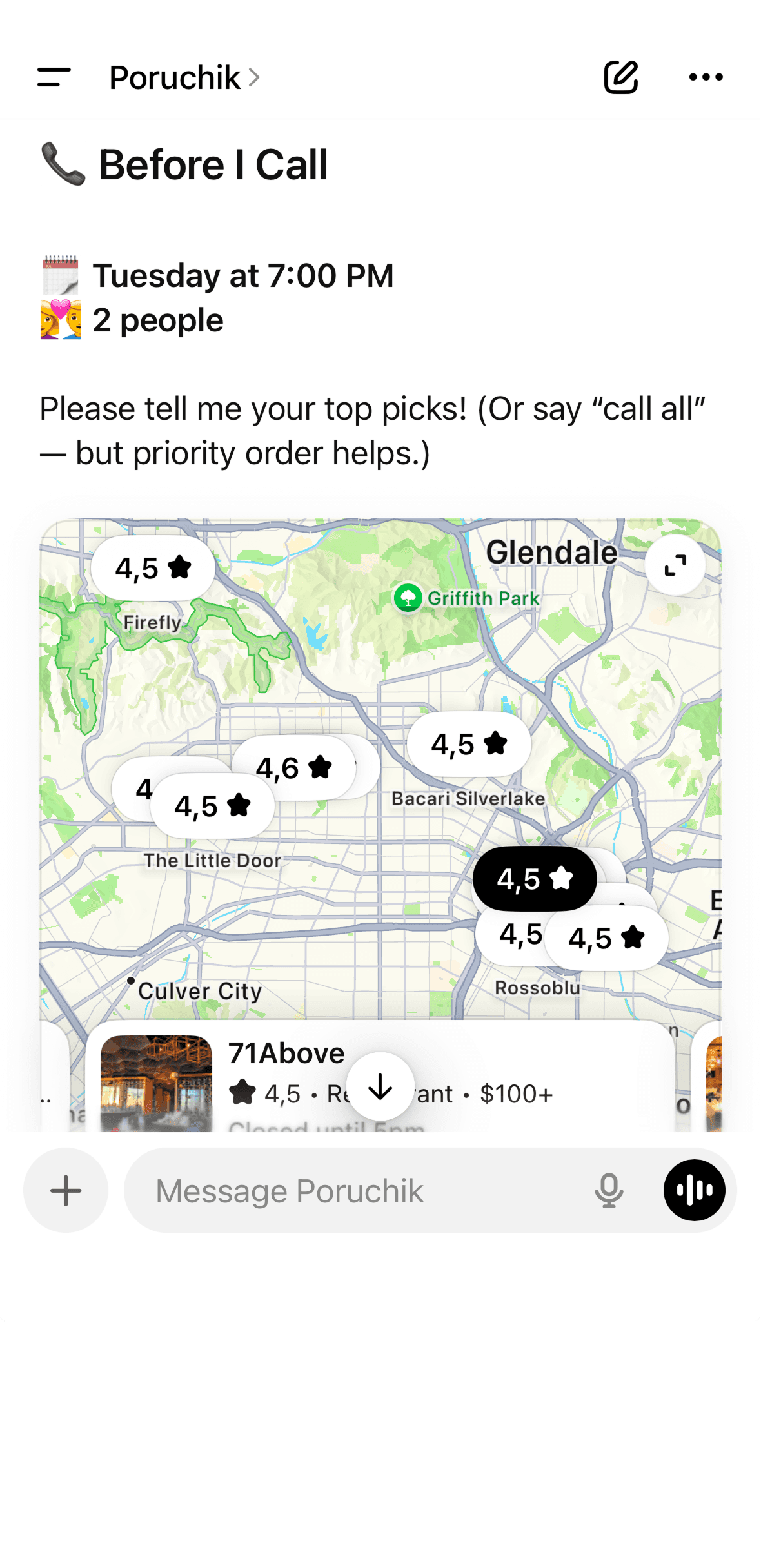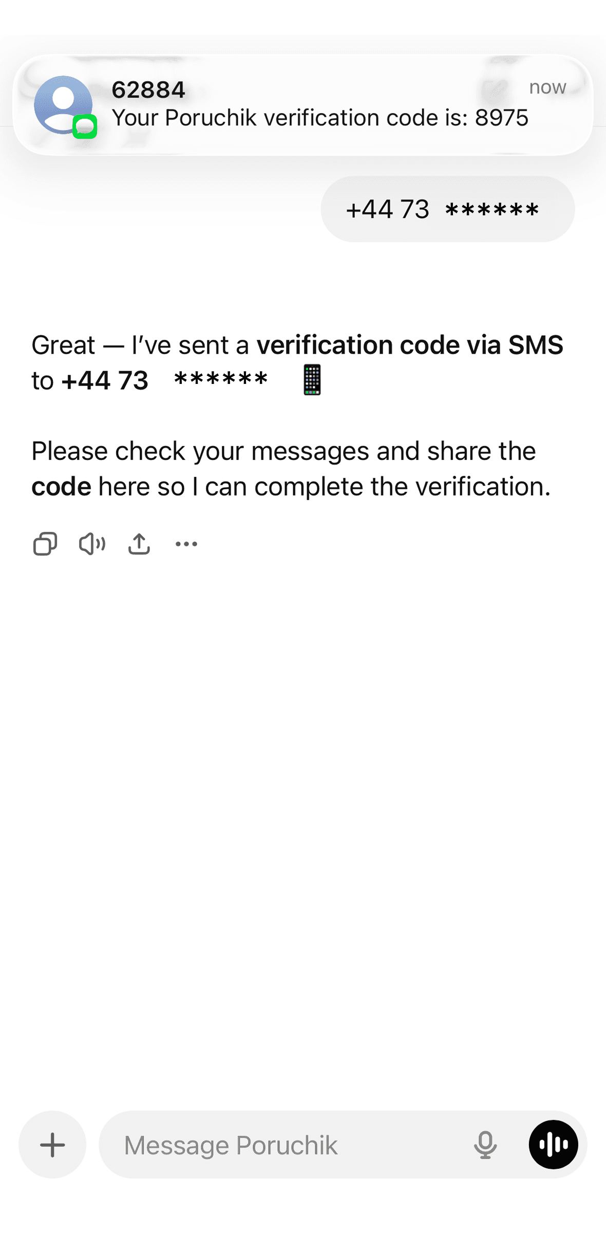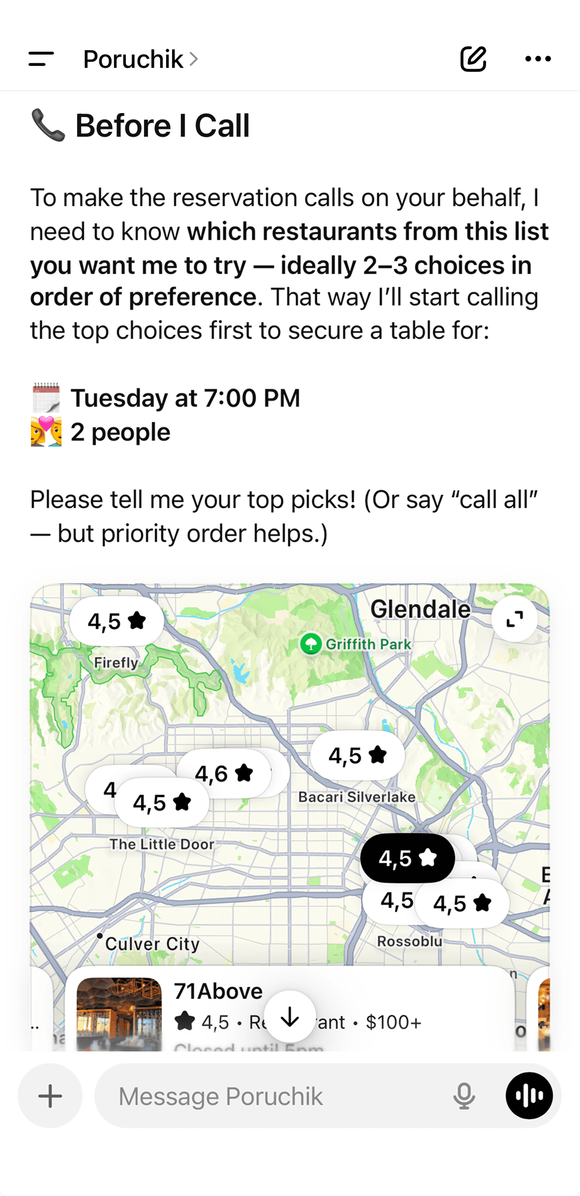Just write what needs to be done. Poruchik lives inside ChatGPT and turns messages into real phone calls.